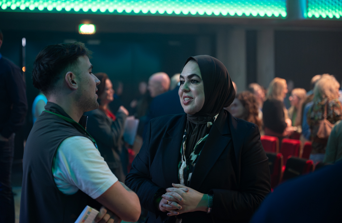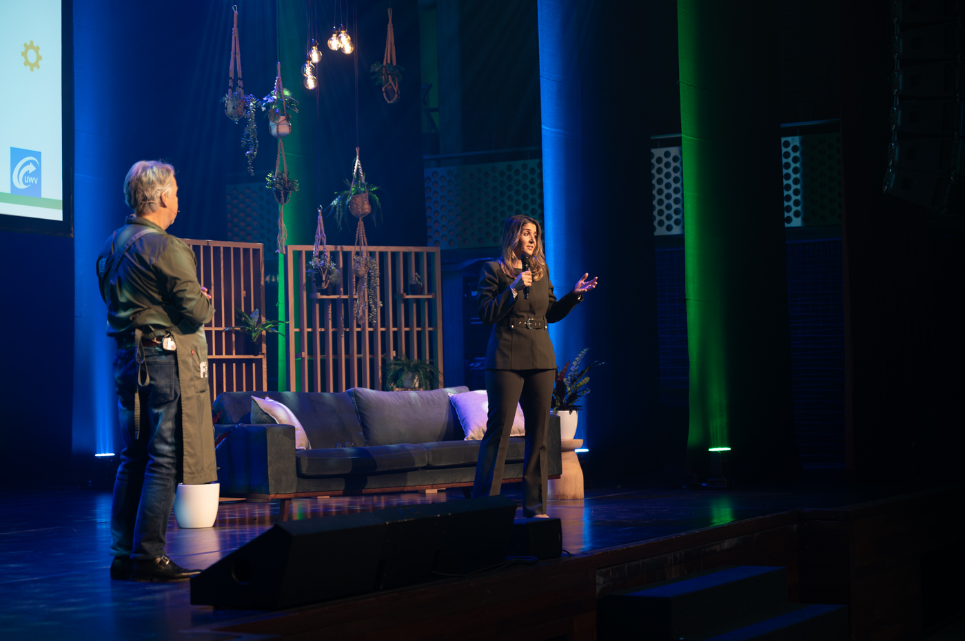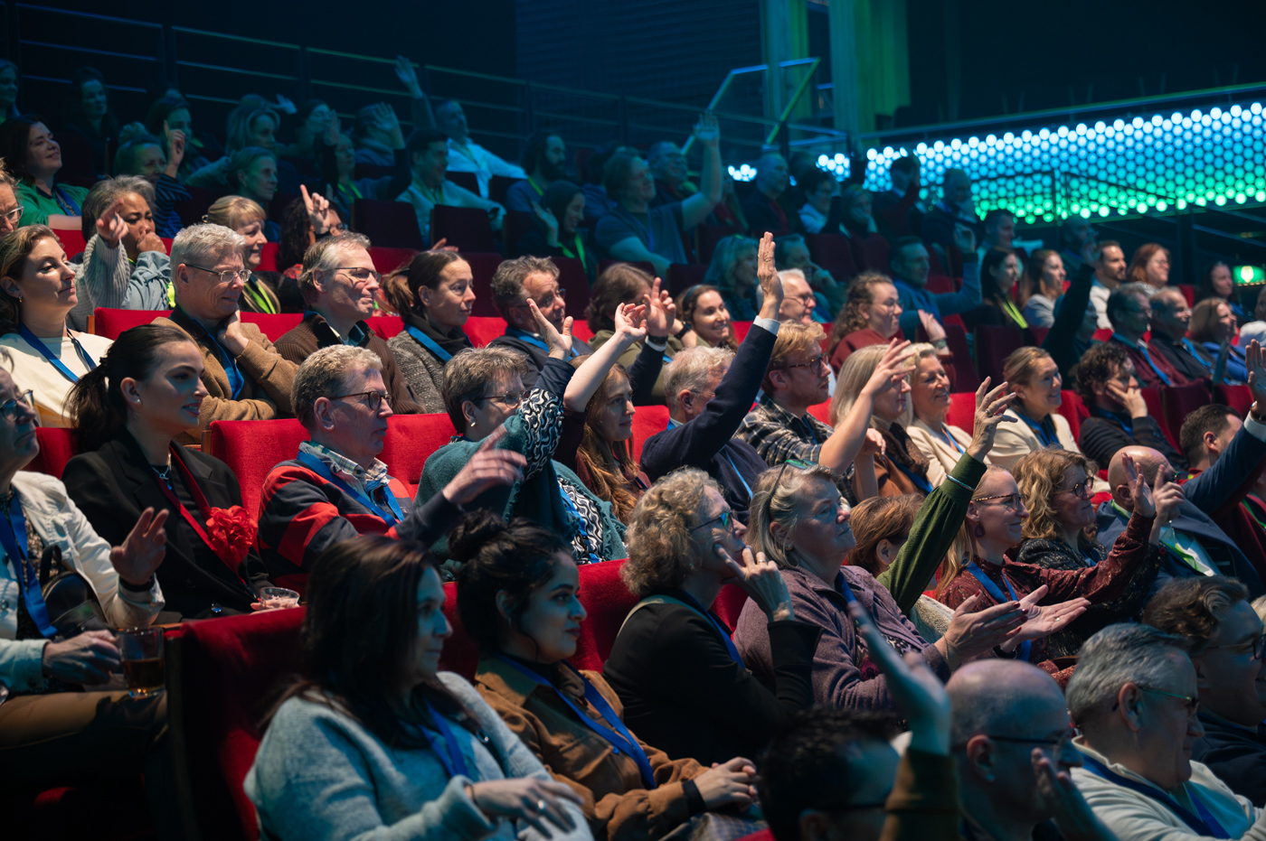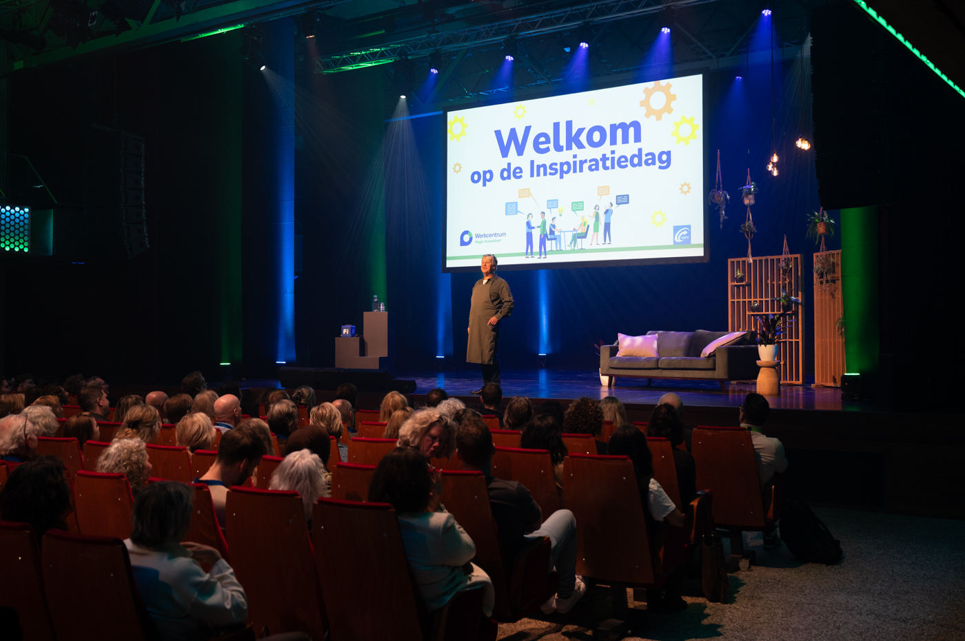 Al snel neemt iedereen plaats in de stadszaal om tijdens de gezamenlijke verbindingsshow de dag te openen. Spreker Milo Berlijn heet iedereen op een humoristische manier welkom: “Ik gun jullie een inspirerende middag, in verbinding met elkaar. Maak contact, dan haal je er vandaag het meeste uit!” Om iedereen los te laten komen, laat hij ze ook meteen oefenen. Iedereen moet iemand opzoeken die hij of zij niet kent en kennis met elkaar maken.